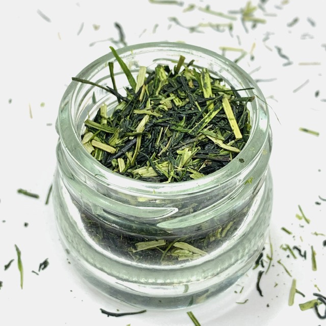 深蒸し茶を仕上した時に、僅かしか摂れない深蒸し茶の茎茶です。茶葉が手触りもしっとりしていて柔らかく、細く重みのあるお茶です。深蒸し茶の茎ということもあり、茎独特の香りの中にコクと深みを感じていただけると思います。